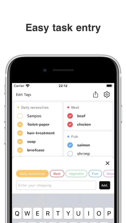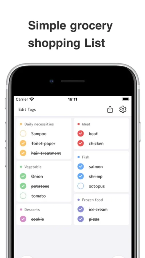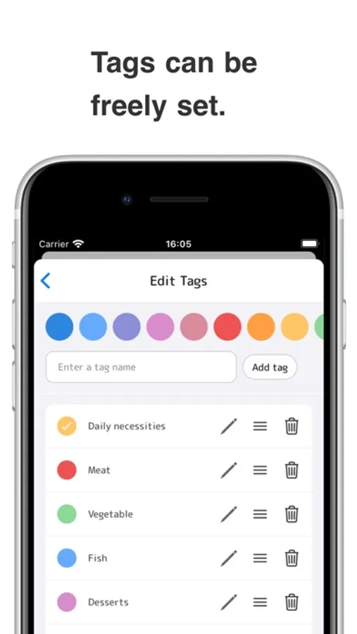 By simply tapping the delete button on the app, you can easily remove items from your shopping list. The tag editing feature allows for uses beyond shopping as well.