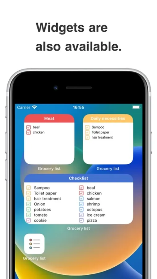 This shopping list app has a variety of features, such as switching to a three-column display, iCloud backup, and sharing your shopping list (text), among others. Furthermore, there is a widget feature that is available for use on iOS 15.0 and later devices.