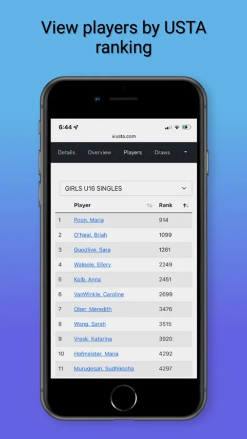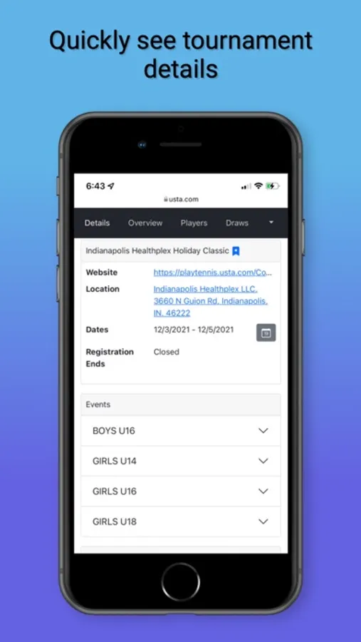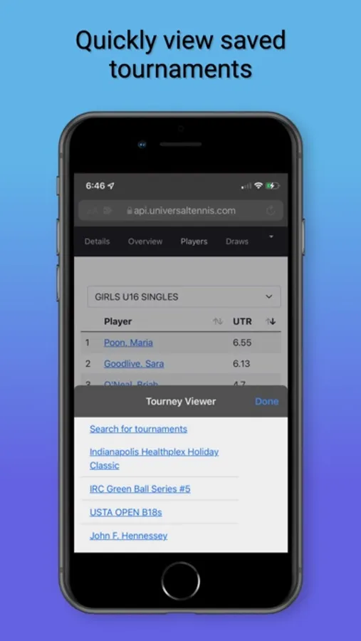 This extension improves viewing of USTA tournaments. It automatically looks up UTR information (requires an account with UTR), or it can look up USTA rankings and results. Easily view player results from the player view or bracket view. The bracket display features the ability to narrow the display to any round. Easily add tournaments to your calendar along with registration reminders. Save tournaments to quickly view their information. Save players to be highlighted in brackets.