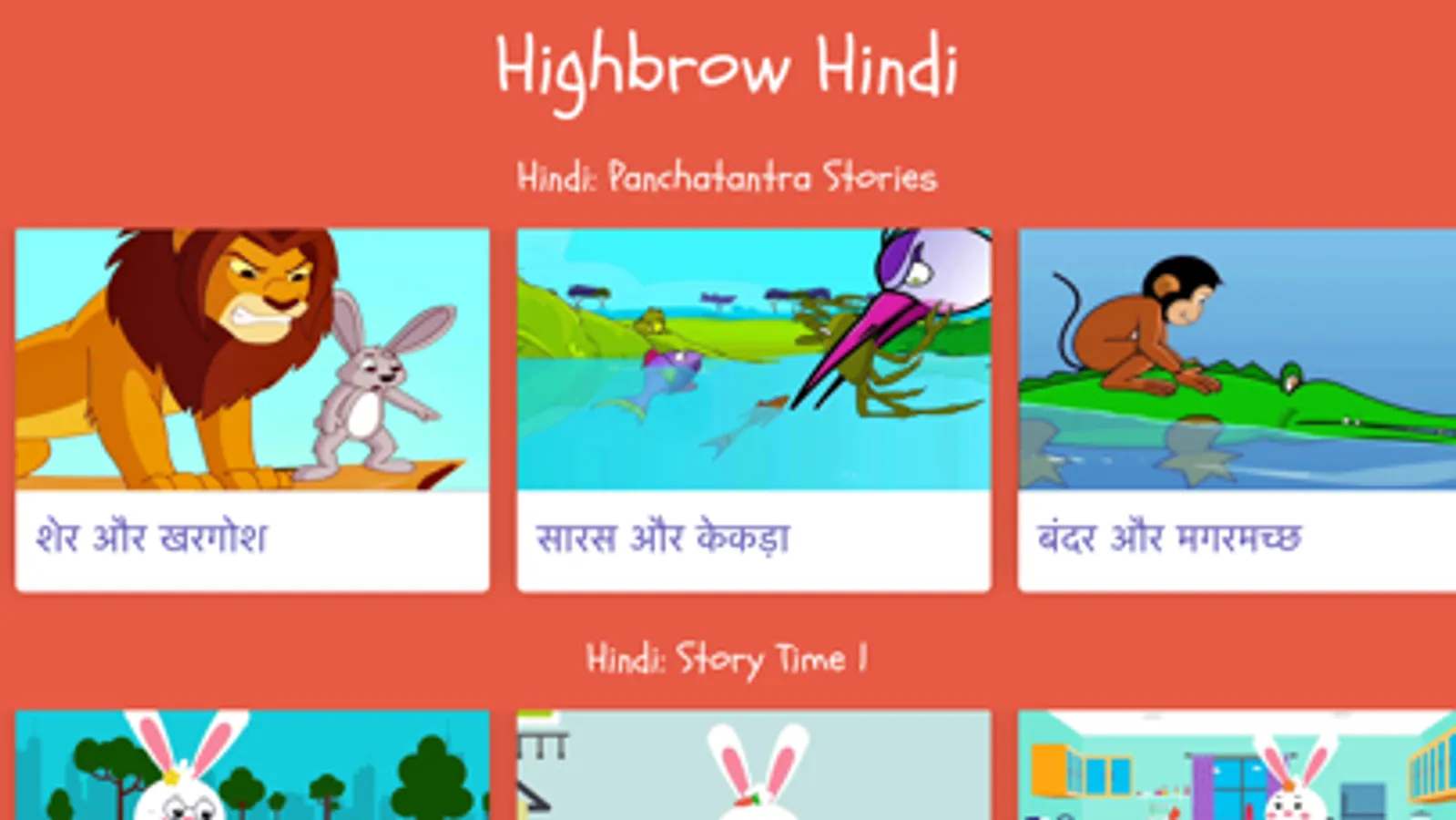 Highbrow Hindi curates the BEST Hindi stories, nursery rhymes and vocabulary videos in the world and puts them in one child friendly, ad-free app.