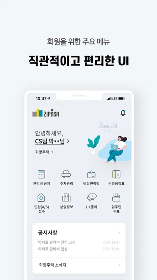 (푸시 알림을 통해 집앤사 공지를 즉시 전달하여 신속한 확인이 가능합니다)