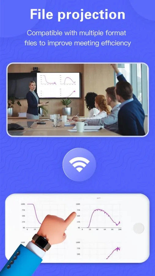 Screen Mirroring is a simple but powerful multi-function projection application. Connect the device under the same Wi-Fi to use both DLAN and AirPlay projection methods. Not only can you put any picture on your mobile phone screen in real time, but you can also cast and play on the big screen by importing videos, photos, and files in your mobile phone. The graffiti projection function imports the picture drawing board for operation, making it more convenient for you to demonstrate and explain in a meeting or teaching.