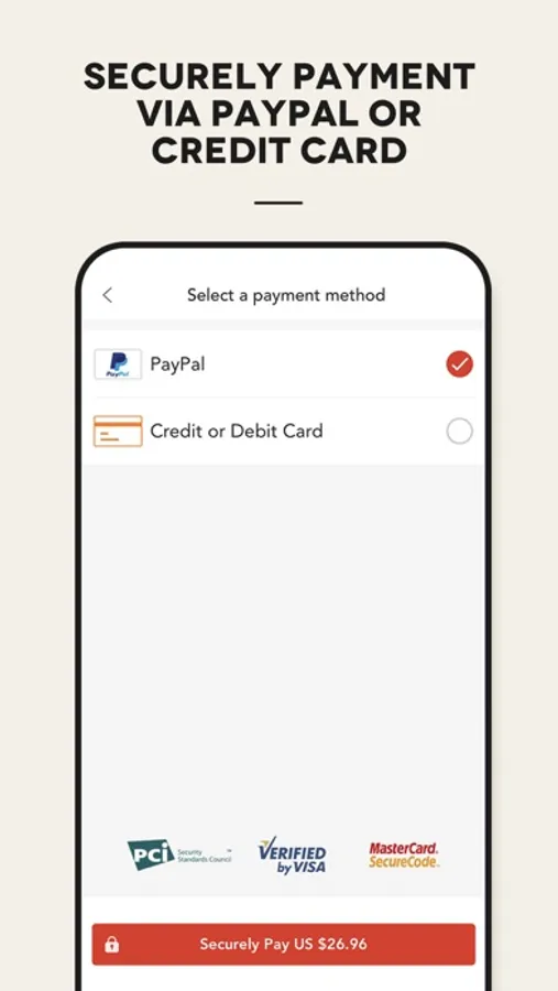 Secure payment via Paypal or credit card