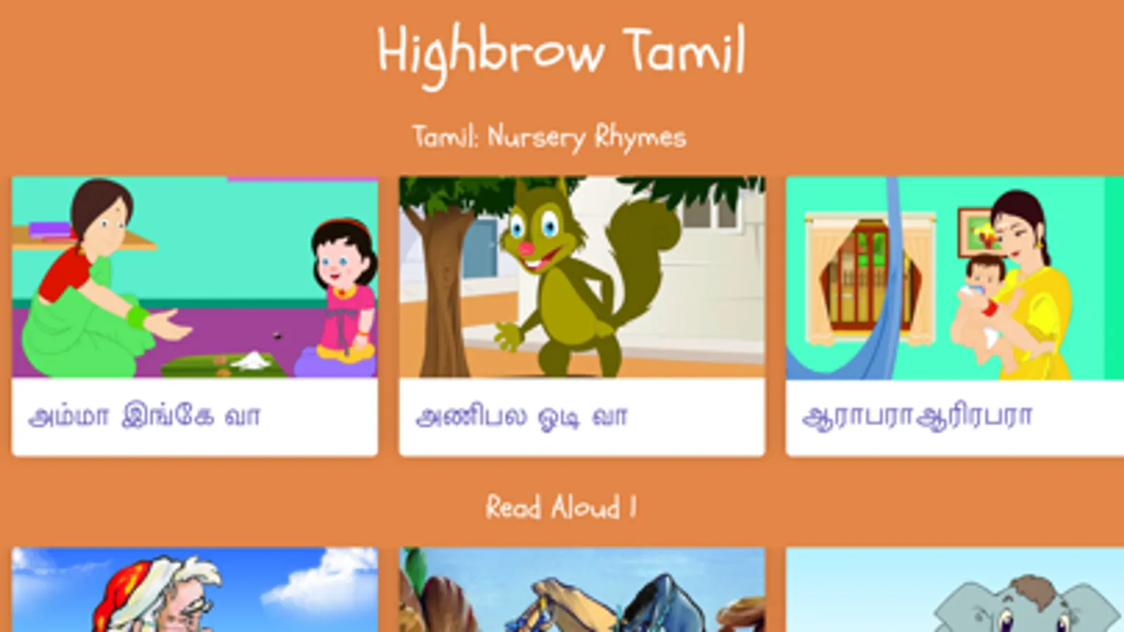 Highbrow Tamil curates the BEST Tamil stories, nursery rhymes and vocabulary videos in the world and puts them in one child friendly, ad-free app.