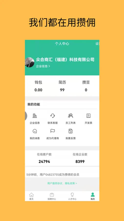 3、企业通过攒佣app,能找求职者的同时,还能享受到攒佣app所带来的服务。
