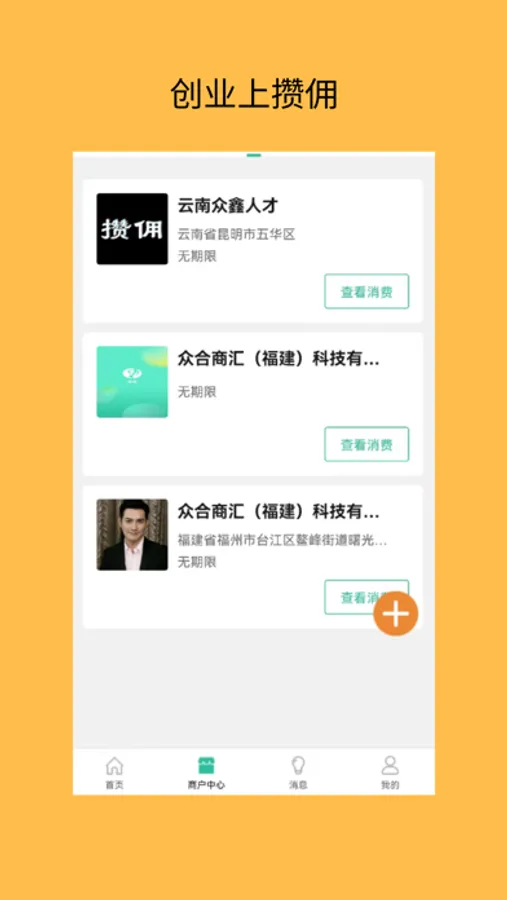 2、代理商在攒佣app上添加企业数量,维护好入驻企业,代理商从而得到一定定服务费。