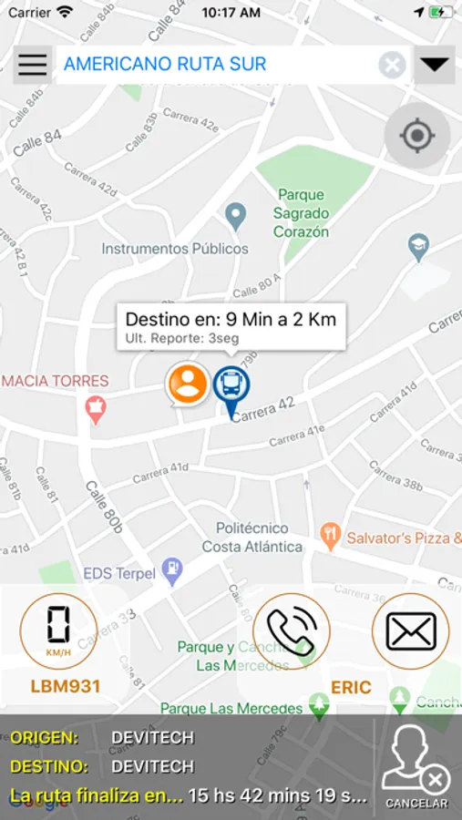 Seguimiento en tiempo real de la ubicación y notificaciones de la ruta escolar.