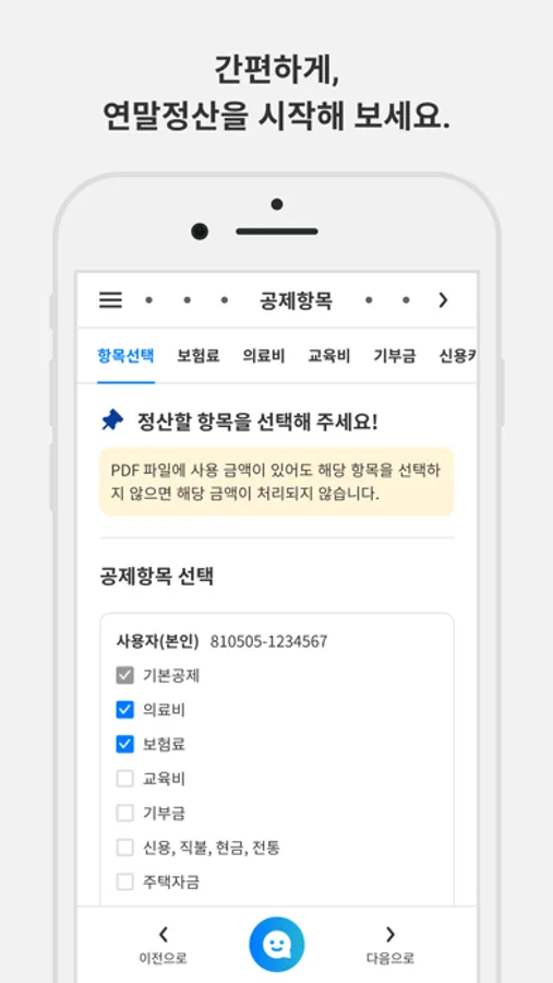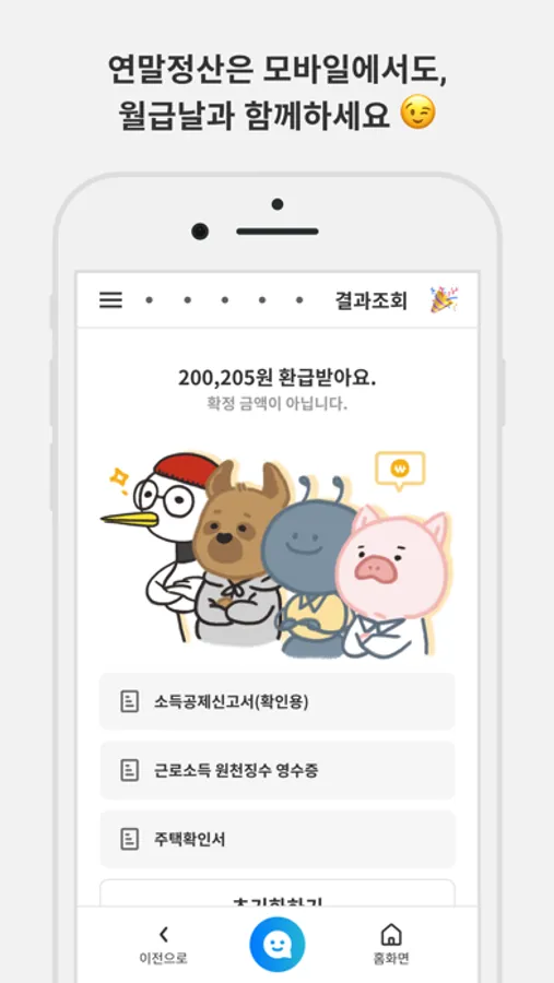 - 연말정산 전체 과정을 모바일에서 할 수 있습니다.