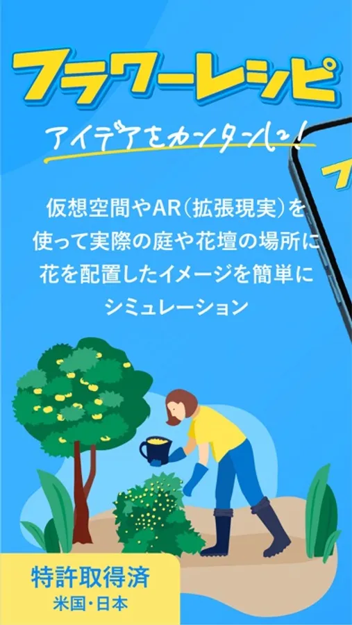 またプレビュー機能ではGPSを使い、実際の太陽の位置から季節や時間毎の日照状況のシミュレーションや花・植物の成長段階のシミュレーションなど、よりリアルな形でのシミュレーション、花壇デザインが可能となっています。Ver1.0.0ではシミュレーションで使用できる花・品種のバリエーションが限定されておりますが、順次花・品種の拡充を行います。