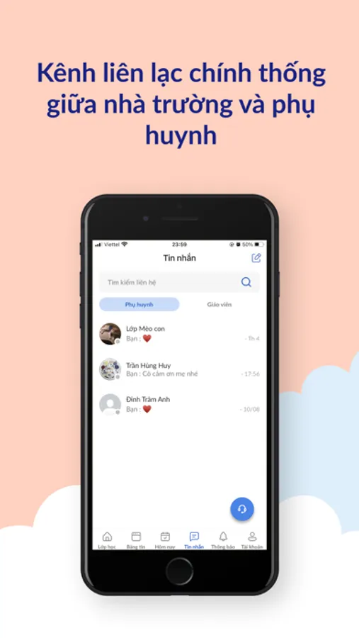 - Nhắn tin xác nhận với phụ huynh