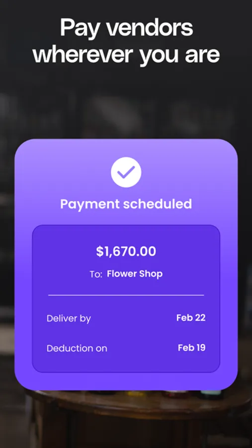 Melio’s payment app makes it even easier for you to send money and track payments wherever you are. Quickly scan bills and invoices or add them manually. Send money and approve any payment—all from your phone.