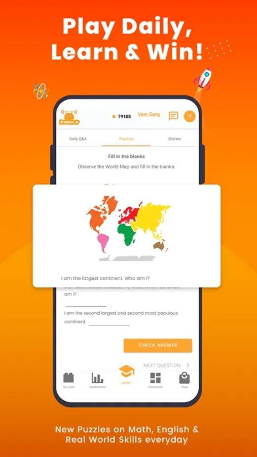 Children receive a fresh set of exercises across Math, English & Real-world skills every single day. These exercises come in fun and engaging formats, encouraging a problem-solving approach. Unlike worksheets, there are instant answers and explanations on attempting the question. Additionally, ~30,000 educational games & stories are available for practice.
