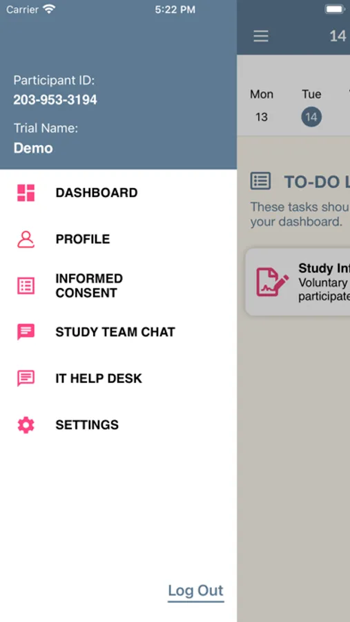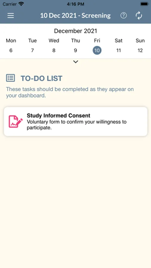 Upon download, the participants create a OAB CDUT account and complete the Informed