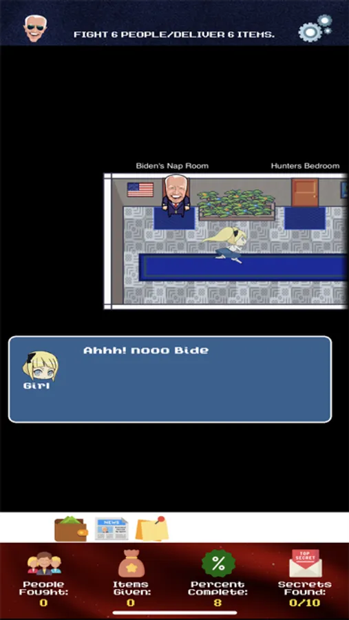 President Joe Biden is tired of doing stuff, and needs your help getting some ice cream. Help Joe navigate his way out of the white house and to the Ice Cream Parlor.