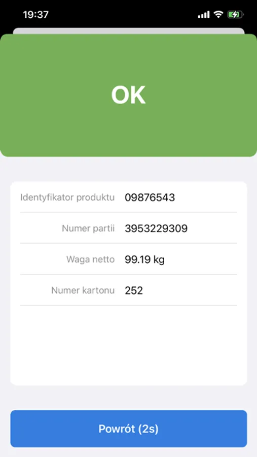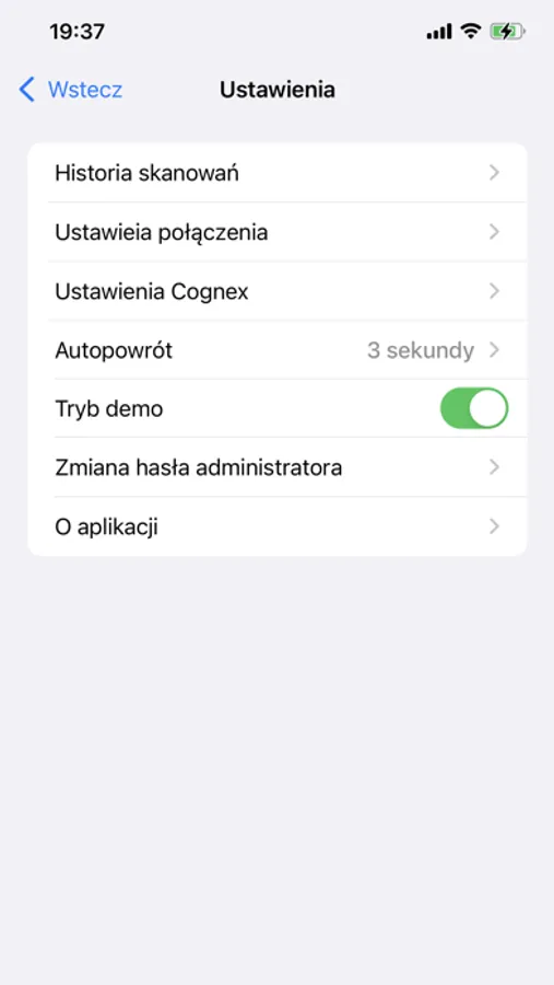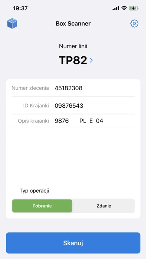 Aplikacja do skanowania i weryfikacji kartonów z użyciem skanera marki Cognex.