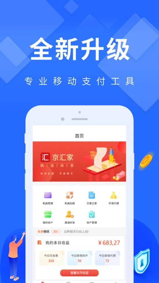 京汇家,您的全能收单助理,收益、业绩、查询统统一键搞定,让每个人都可以享受科技的乐趣。