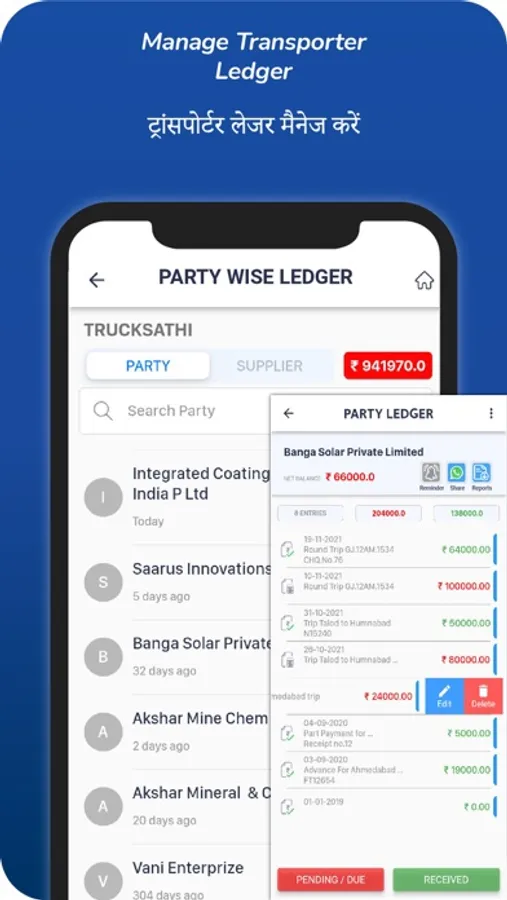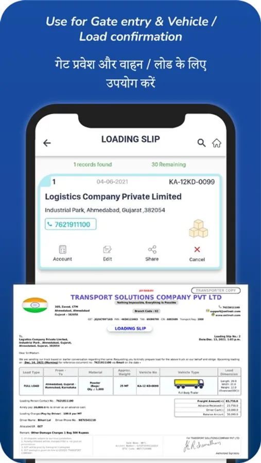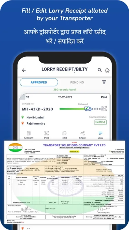 First time in India introducing a 2-way transport documentation app. Now manage your complete transport business needs on this one-of-a-kind solution where you can view and share all the transport documents like LR/Bilty, Invoices, Loading Slip, Payment Advice and Quotation to anyone from anywhere via mobile and web login. The consignor can also manage the transport ledger (Transport Accounting) and provide payment advice.