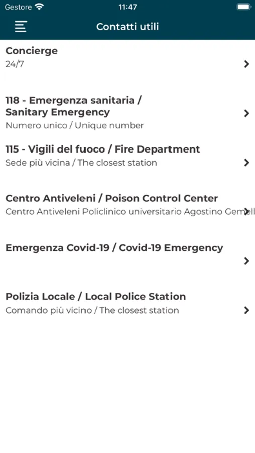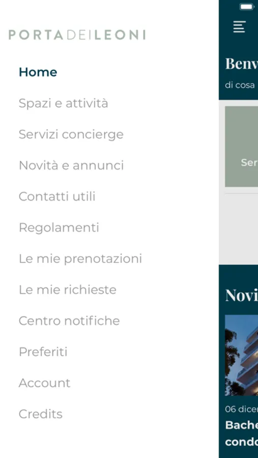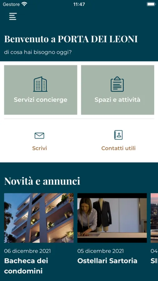 App per visualizzare servizi, attività e spazi presso Porta Dei Leoni, effettuare prenotazioni e contattare il concierge.