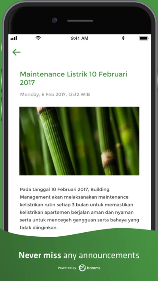 Introducing Vida Bekasi by BAMMS, a mobile application that allows all tenants to receive information about their building and units, to report problems or incidents, to book facilities, to create and manage inquiries, and to request for any value added services provided by the town management.