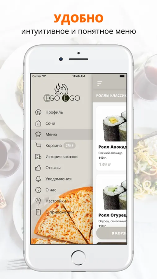 Приложение Ego Ego — это удобный способ заказа еды домой или в офис! Мы готовим наши блюда из качественных свежих ингредиентов и доставляем еду по Сочи быстро и бережно.
