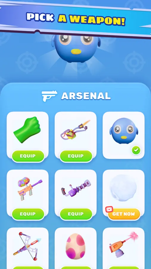 Hit, shoot and crush! Fight colorful and crazy giants with the funniest weapons: fish, paintball gun, rockets, banana launcher, duck, arrows, flamethrower, and more! Use the power of weapons and enjoy it.