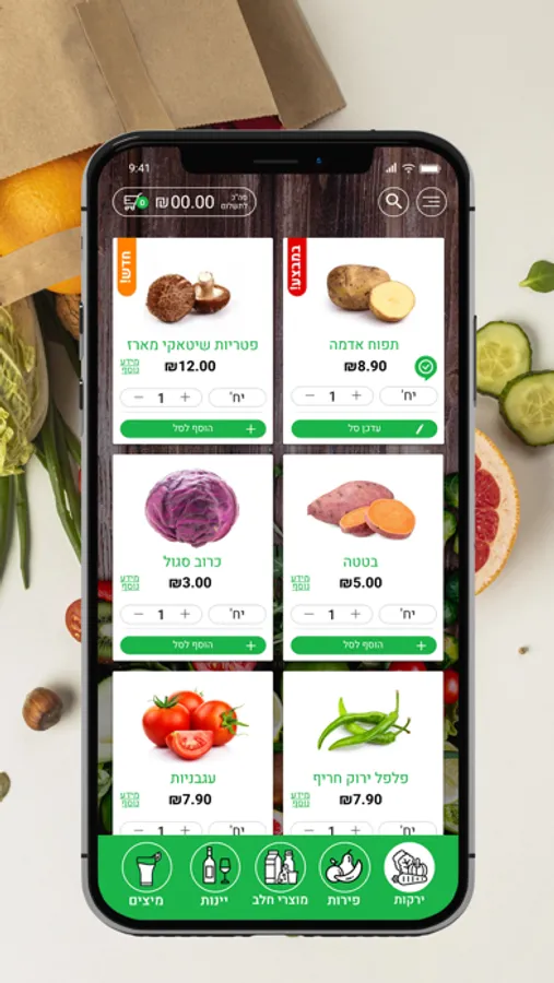 פירות וירקות , מוצרי ניקיון , מוצרי חלב , קולינריה ועוד ..