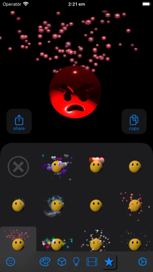 To export the emoji, tap the Share icon, to share to another app directly, or the Copy icon to copy the animated emoji to the clipboard. You can then paste it in any other apps that accepts images.