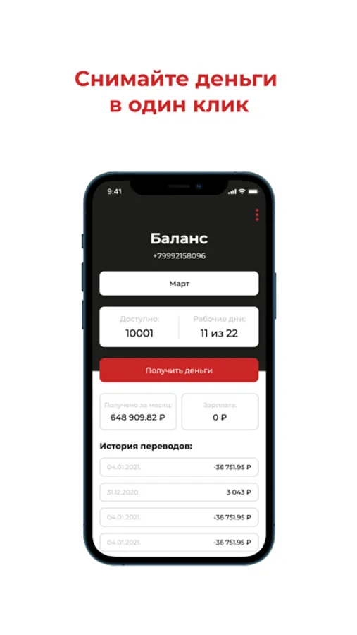 Приложение даёт возможность снять Ваши заработанные деньги в тот момент, когда вам необходимо, а не в установленные работодателем даты.