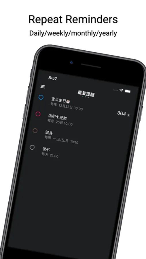 You can set up daily, monthly, yearly, and timed reminders like Mondays and Tuesdays of the week.