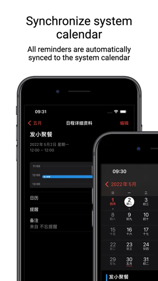 > All reminders can be set to automatically sync to the system calendar