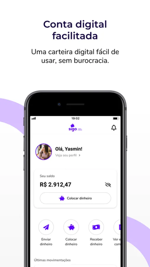 Com sua conta digital, você pode controlar suas finanças sem burocracia e direto do seu celular. Acompanhe saldos e extratos 24 horas por dia, 7 dias por semana, 365 dias por ano. Realize transferências de forma rápida, segura e fácil.