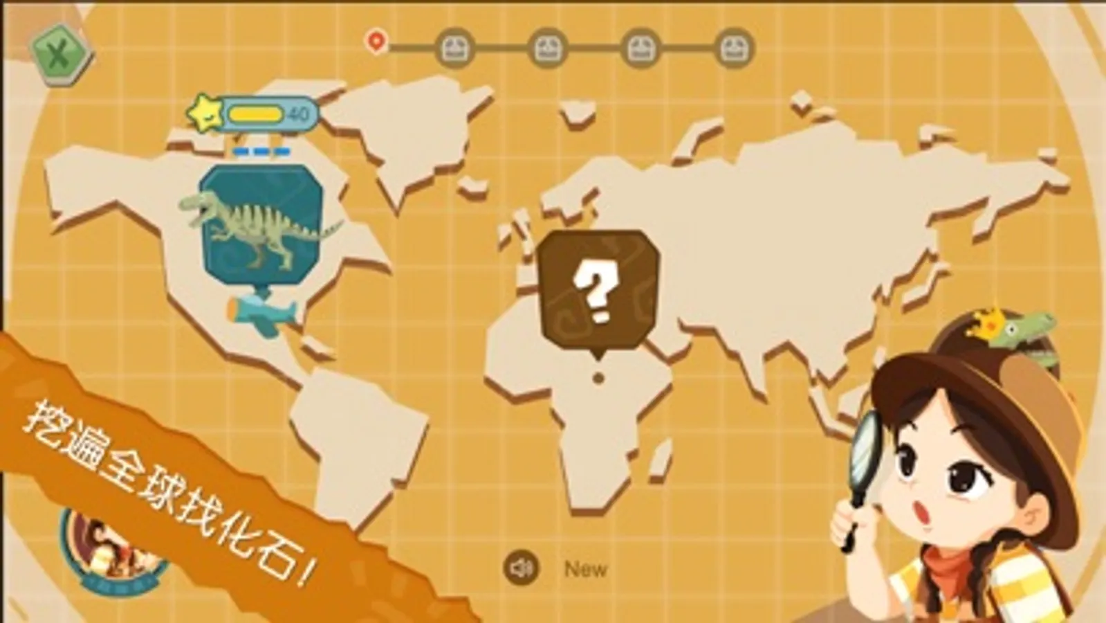 在全球各地挖掘150+块恐龙化石,发现80+神秘彩蛋,复原32只恐龙,收集400+恐龙考古小知识。