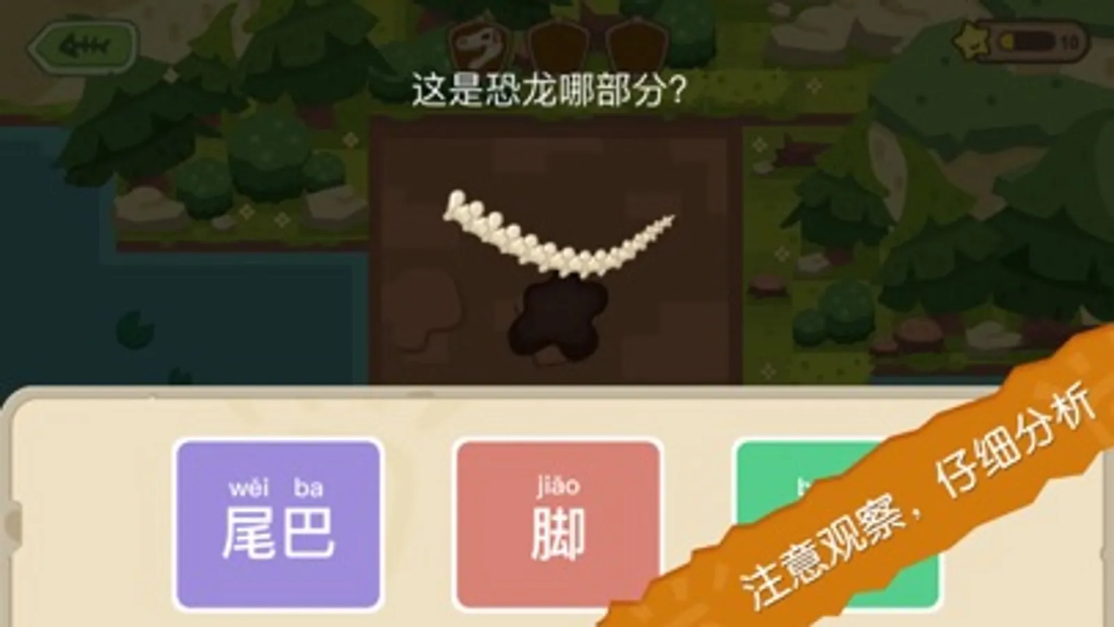 辨化石,猜恐龙,利用对线索的分析,锻炼观察力和逻辑思维能力。