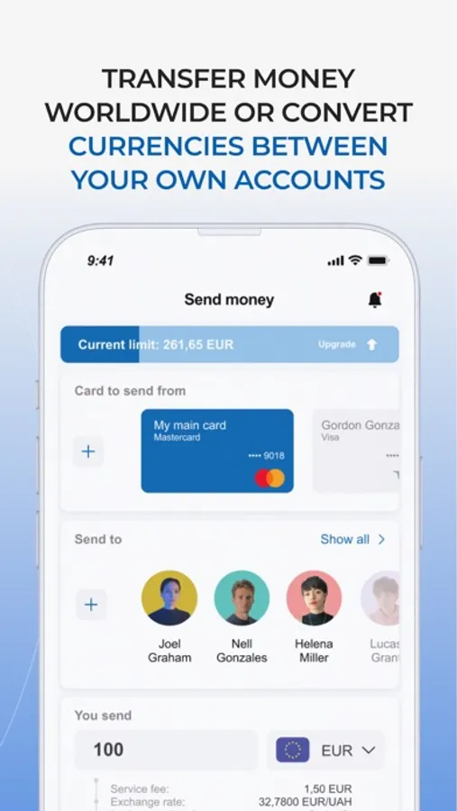 - Send money with every debit or credit Visa, Mastercard, Maestro;