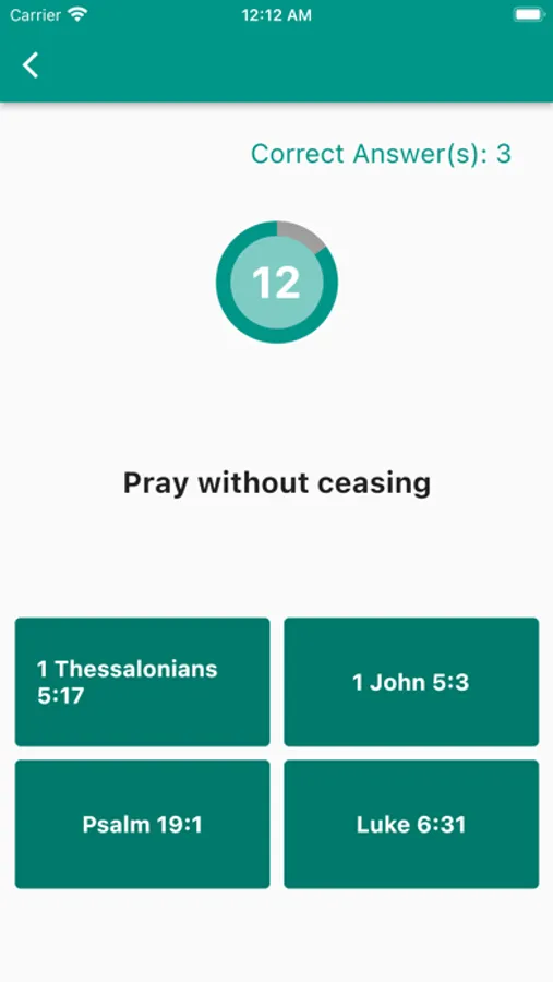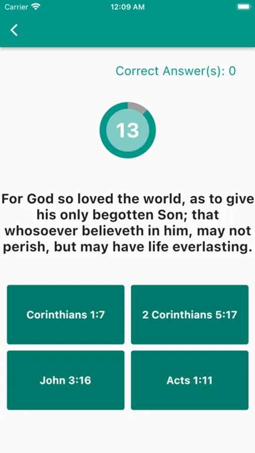 Bible Verse Master is a game that tests your knowledge about your Bible. Answer each question within 15 sec to increase your score and become the next Bible Verse Master!