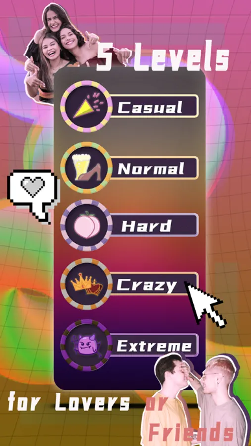 Modes designed for Couples and Groups. A well-designed truth or dare game always can help to build strong connections between you and your friends/partner.
