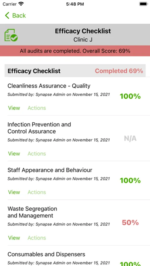 Efficacy Audit is an audit platform that provides our customers with access to extensive pre-built templates for use in clinical environments. Each audit produces real-time graphical dashboards and notification of non-compliances to responsible persons.