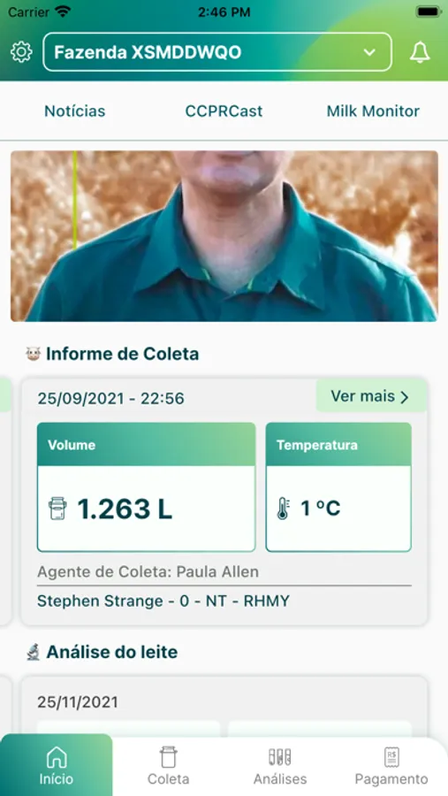Acompanhamento de processos relacionados à produção do leite de produtores da Cooperativa Central dos Produtores Rurais de Minas Gerais, indo desde das coletas e análises até informações de pagamento e informativos gerais