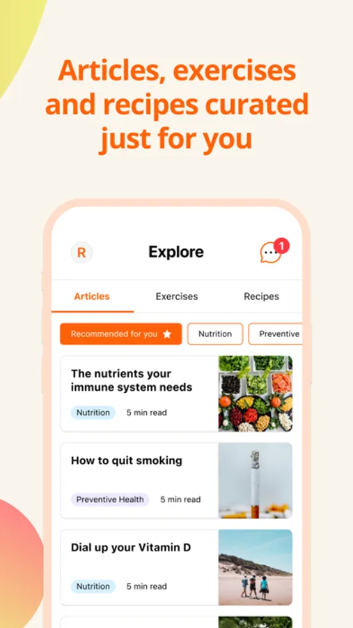 Get matched to a personal health coach who will work with you to understand your health goals so they can provide you with fully personalised guidance and support.