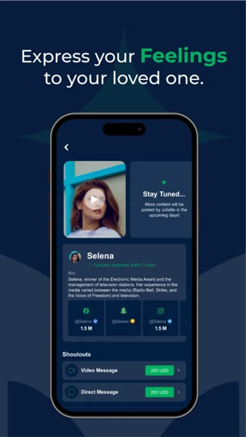 With Mashhoor, you can directly connect with celebrities by requesting a personalized video message for your loved ones or private chat using text and voice messages - all within the app.