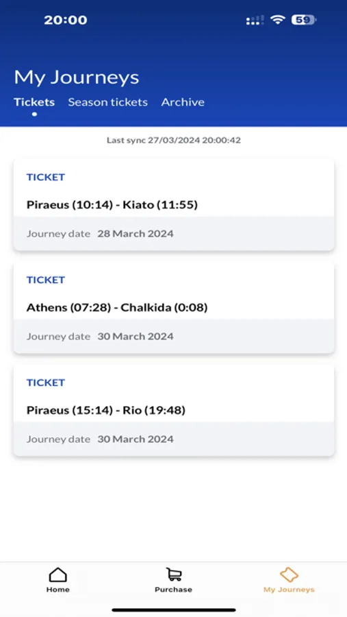Choose from the list of available trips, be informed inform about the type of train and the intermediate stations of the route, choose one of the available payment methods and buy your ticket. To check your ticket you can and download it or look for it in ""My Trips"" your list of trips when you need it.