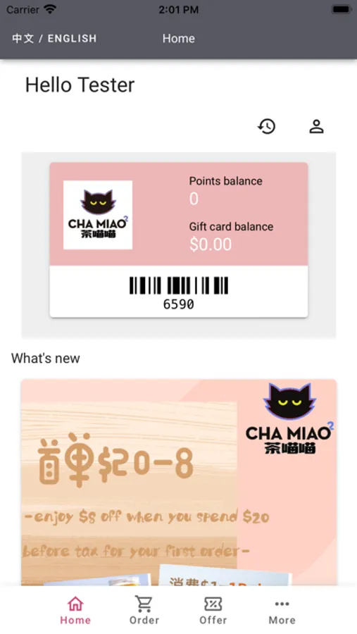 The Cha Miao² app allows you to order, pay and gain points with every purchase, skip the line with no extra charge.