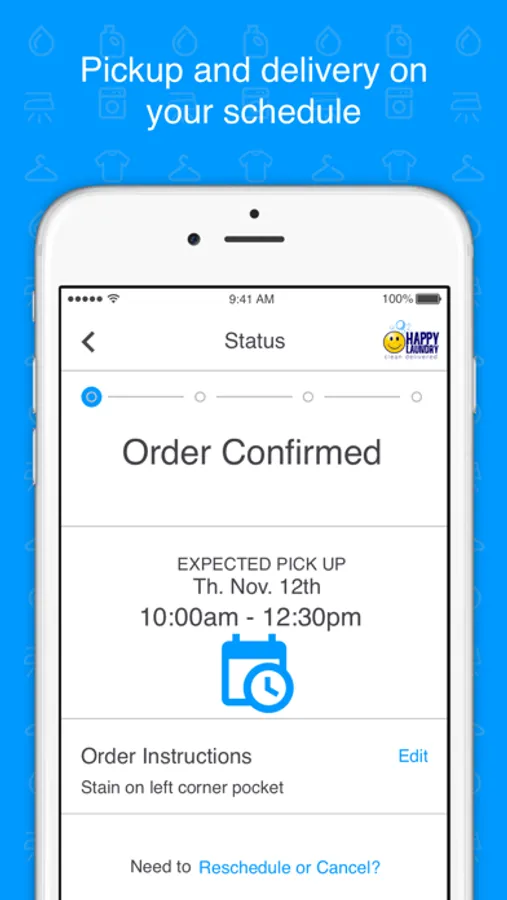 Happy Laundry is Clean Delivered! – Commercial and Residential laundry service for your home or business.nnCOMMERCIAL AND BUSINESS LAUNDRY…..WE MAKE YOUR BUSINESS LOOK GREAT.nBig linen companies don’t always understand small business owners’ needs. At Happy Laundry, you get professional service and the personal touch. We will design a service schedule to fit your needs. We can pick-up 5 days per week if you like.nnResidential Laundry – WASH, DRY, AND FOLD – HOW TO GET STARTEDn1. Download the app and schedule your first pick-up!nWe will pick-up your Personal Laundry and Dry Cleaning at your home or office. Our service area and pick-up and delivery days are shown on our webpage.n2. Leave us your Laundry and Dry Cleaning at your Front Door.nGather your laundry in preparation for pickup. Sort special care, dry cleaning, and any items that have special spotting needs or requests in a separate bag within your laundry. Any plastic bag will do for your 1st order. We will bring you a Free Laundry bag back with your 1st delivery.nAdditional Free Bags are available for both Personal Laundry and Dry Cleaning.nYou don’t need to be home for pickup or delivery — just leave your dirty laundry on your doorstep.n3. Clean deliverednYour clean, ready-to-wear items will be returned to your front door or predetermined location in 2 days!!nPayment is billed to your credit card automatically. We will call you for your payment information after you Sign Up Now.nnDry Cleaning – Yup, we deliver that too!nnHappy Laundry currently has routes in the Greater Spokane Area, Airway Heights, Spokane Valley, Liberty Lake, Post Falls, and Coeur d’Alene.nnClean Delivered!