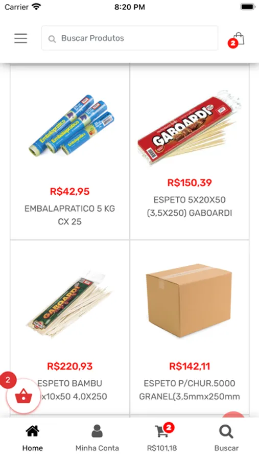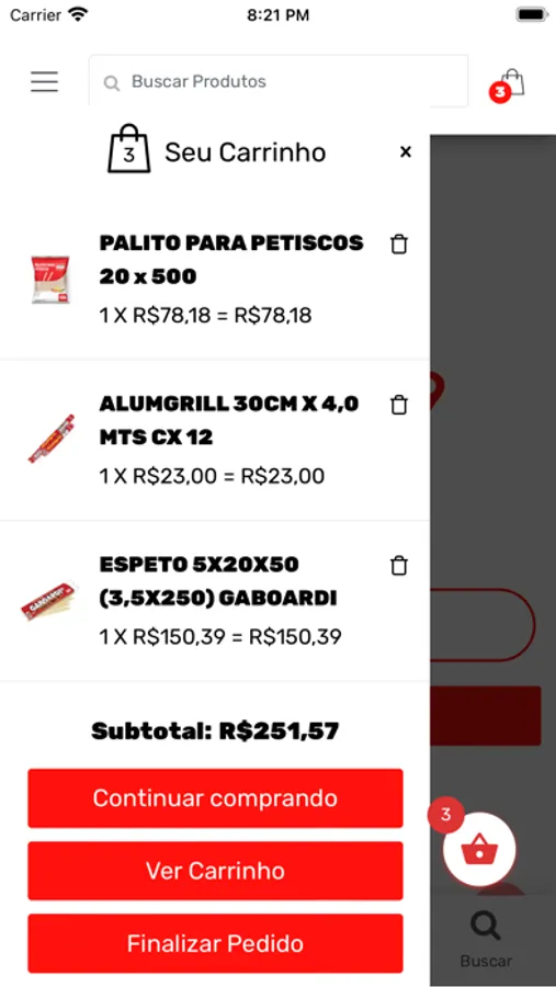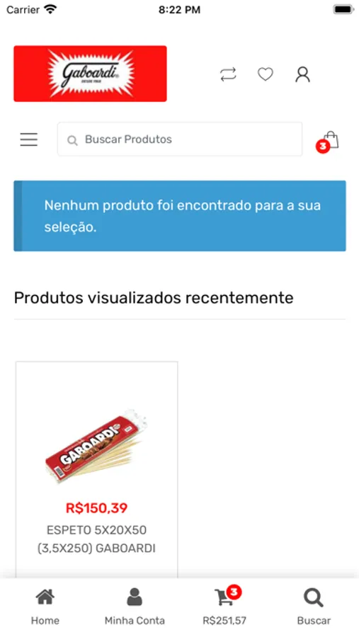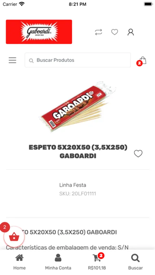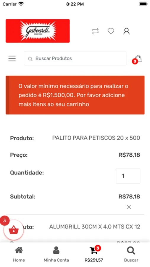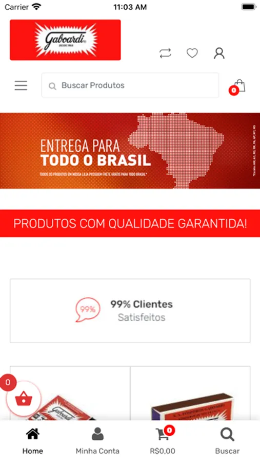 aplicativo desenvolvido para venda de produtos Gaboardi