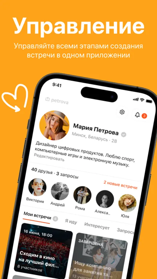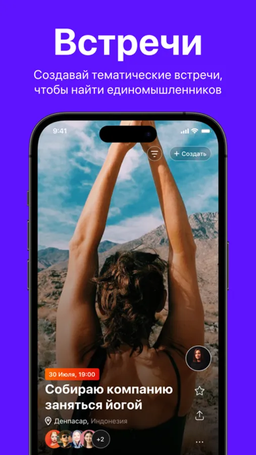 - Создавай свои встречи для развлечений, общения, нетворкинга, обучения