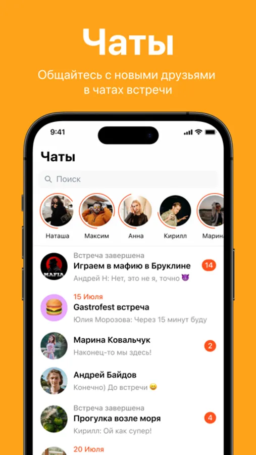 - Общайся с новыми друзьями в чатах встречи