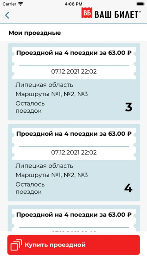 Ваш Билет - мобильное приложение для оплаты проезда на общественном транспорте. Пополните свой счет любой банковской картой. Оплатите проезд и получите электронный билет на Ваш смартфон. Покажите билет водителю или контролеру с экрана Вашего смартфона. Используйте QR-коды Ваш Билет для выбора маршрута. QR-коды размещены в салонах транспортных средств, подключенных к системе Ваш Билет.