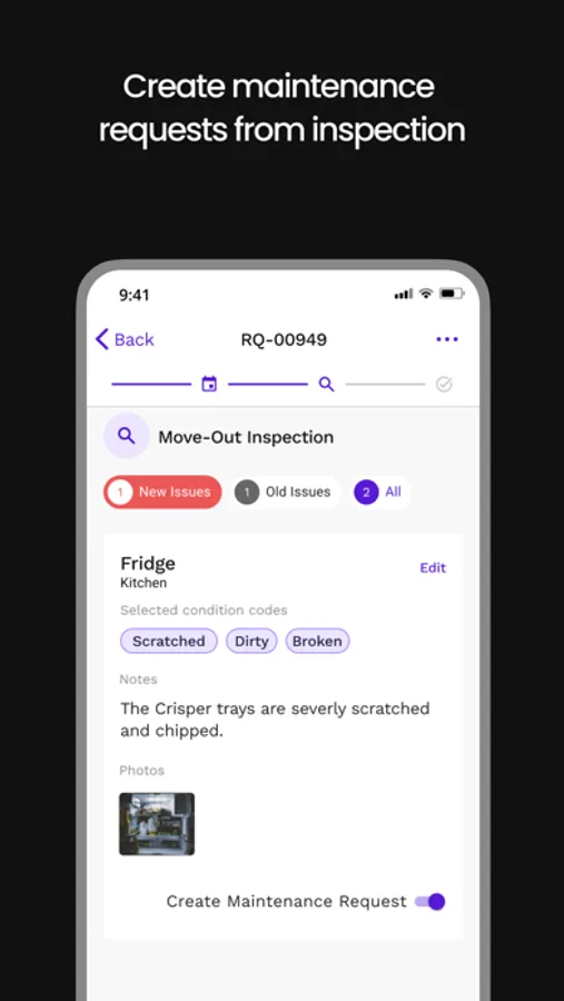 - Maintenance Requests – Create maintenance requests on the spot during the inspection process