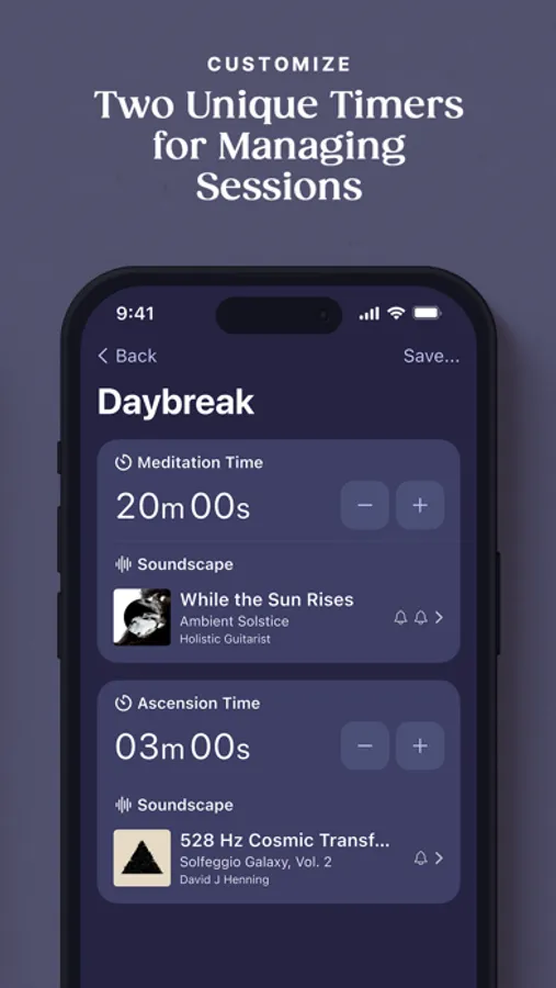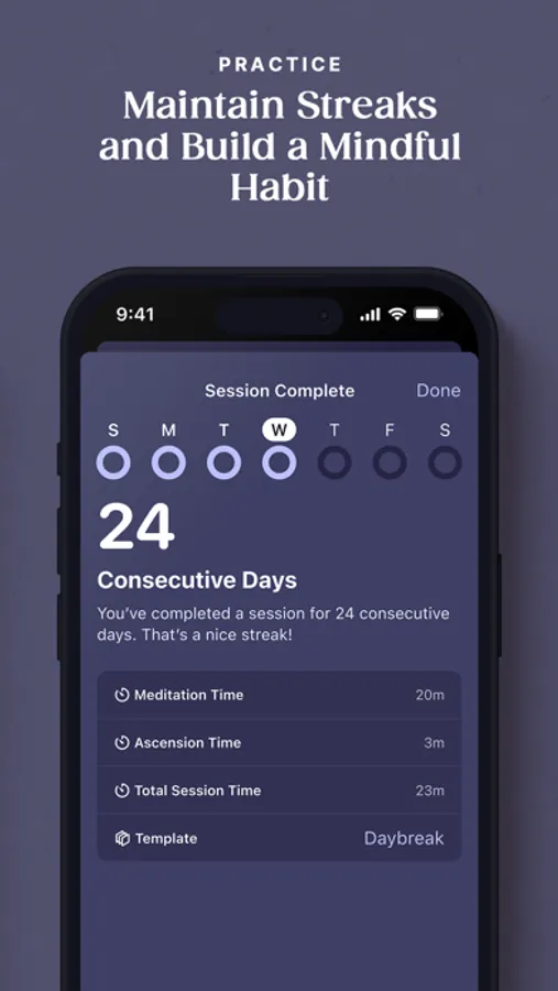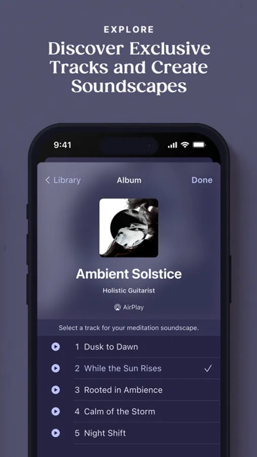 Discover exclusive tracks and create soundscapes, manage your session with two unique timers, and maintain streaks to build a mindful habit.