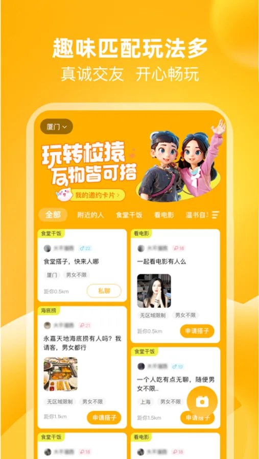 【奇遇搭子】一个人太无聊?上校猿,找个搭子啊!——饭搭子,游戏搭子,旅游搭子,聊天搭子,学习搭子、减肥搭子,运动搭子...在校猿,万物皆可搭!